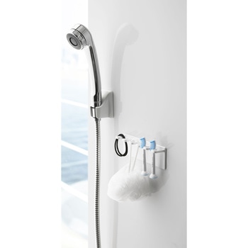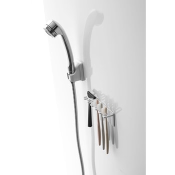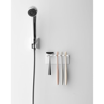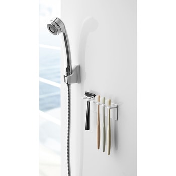 マグネットが付く浴室壁面に簡単取り付けの歯ブラシホルダー。歯ブラシを5本収納可能。歯ブラシを引っかけるだけの簡単ホルダー。替えの電動歯ブラシやバス小物の収納にも。