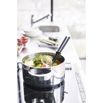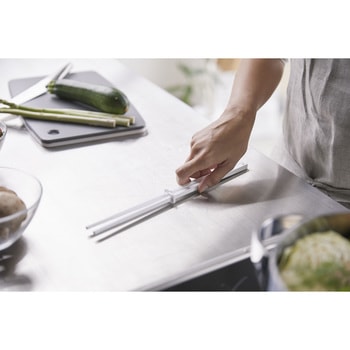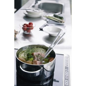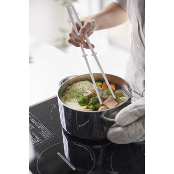菜箸の先を浮かせて置ける菜箸キーパー付き。直置きにならずに清潔。菜箸キーパーの位置調節で、お鍋にちょい掛けも。シリコーン製で滑りにくく、フライパン・ナベなどを傷つけません。グリップは長時間の調理でも疲れにくい軽いナイロン芯材。太めで転がりにくい角型形状。麺や小さい食材が滑りにくく、しっかりつかめます。菜箸キーパーは菜箸に差し込んで位置を調節してご使用ください。菜箸キーパーはお好みで取り付けてご使用ください。