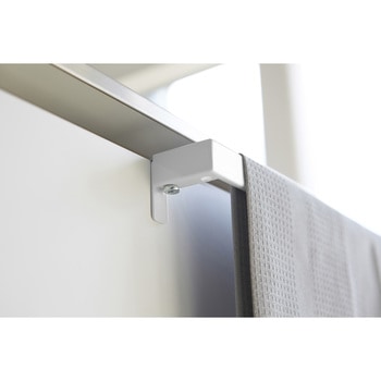 扉の厚みにぴったり調節できるスタイリッシュなタオルハンガー。取り付けフックを扉の厚みにぴったりと調節して固定するので、ガタつきが無く、しっかりと取り付けられます。キッチン・洗面所・トイレの扉などにシンプルでスタイリッシュなデザインのタオル掛けです。レールハンドルタイプの扉にも取り付け可能。取り付け幅が伸縮するので扉にぴったりフィット。ネジでしっかり固定するのでガタつきません。