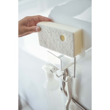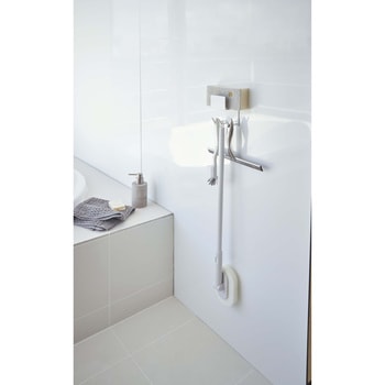 強力マグネットでお風呂の壁面に取り付けるだけ!スポンジ・掃除ブラシ・スプレーボトルを一括収納!スポンジは置くだけの簡単収納!スプレーボトルが掛けられる奥行きの長いフック!