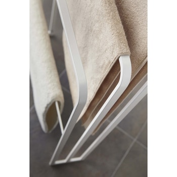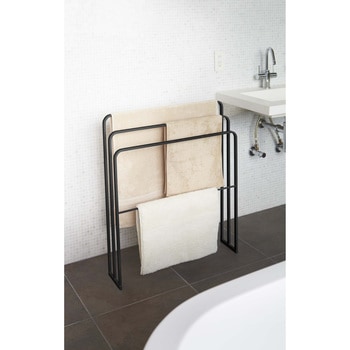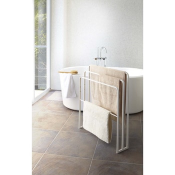横からスライドさせてスムーズに掛けられるスタイリッシュなバスタオルハンガー!大判サイズのバスタオルが干せて、下段のバーにはバスマットなども干せます。