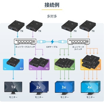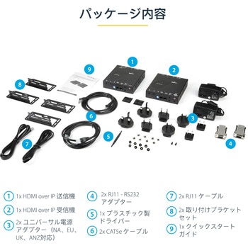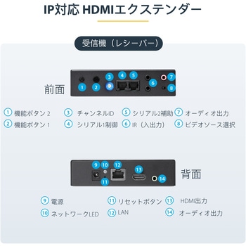 スケーラブルなビデオ分配システムでHDMIビデオ信号とRS232制御機能を複数のディスプレイに延長単一/複数ビデオソースと複数受信機で印象的なビデオウォールを構成直感的なモバイルアプリでデジタルサイネージを制御/管理1080pビデオ解像度の鮮明な画質付属の固定用金具ですっきりとしたプロ仕様の設置が可能