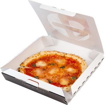 ピザ10インチ。持ち手付なので袋に入れる手間がかかりません。天面曇り止めフィルム付。