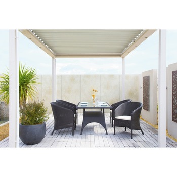 「四季を楽しむ日本人の暮らしに寄り添う」をコンセプトにしたLoom Gardenのファニチャー。ダークブラウンカラーのラタンを使用した、優雅で高級感のあるイジアンダイニングシリーズ。オフホワイトのクッションでエレガントなさわやかさをプラスしています。細やかなラタンを密に編みこんだ柔らかなフォルムは、落ち着いた居心地のよさを演出。ダイニングタイプでありながらついついくつろいでしまう、そんな一脚です。