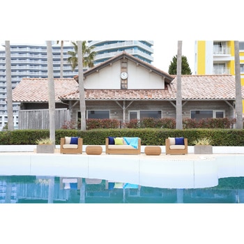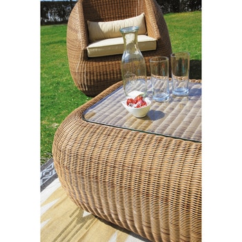 「四季を楽しむ日本人の暮らしに寄り添う」をコンセプトにしたLoom Gardenのファニチャー。ナチュラルカラーのラタンで編まれた丸みを帯びたラインが、愛らしく上品なブルコスシリーズです。質感よい人工ラタンにガラス天板を組み合わせることで、より高級感のあるリゾートスタイルに。フラットな天板のため飲み物を置いても安心です。庭やテラスに合わせて2種類のサイズから選ぶことができます。