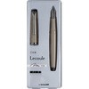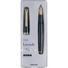 金属パーツがクールな雰囲気を醸し出す、ダークカラーのボディの万年筆です。中細のペン先なので、はじめての万年筆にも書きやすい太さ。はじめての万年筆に、インクで遊びたい方に、万年筆を楽しみたい方に…シンプルでベーシックなフォルムに、持っていてワクワクするカラーリングです。