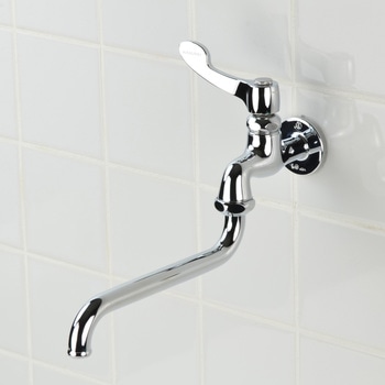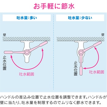 ハンドルが壁にあたり吐水量を制限するので、簡単に節水することができます。