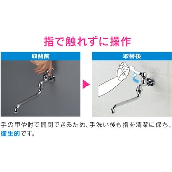 指で触れずに手の甲や肘で開閉できるので、手洗い後も指を清潔に保てます。大人数が使用する学校や施設に最適です。