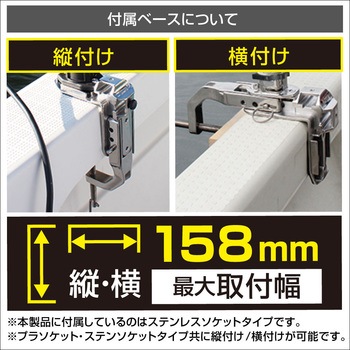 船釣りにピッタリの万力ベースが付属しており、最大158mmまでの板厚に取付可能です。