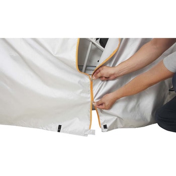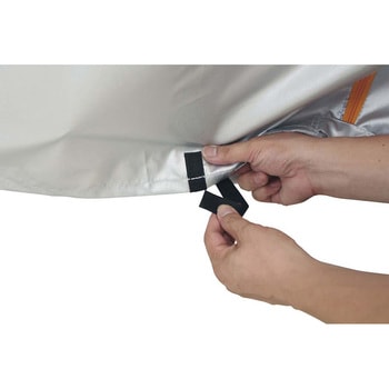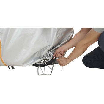 電動アシスト車用盗難防止!ワイヤーロックを通す穴付き。まくれ防止!スソをしぼるヒモ付き。風飛び防止!マジックテープ付き。使用時以外は、カバー一体型の収納袋にラクラク収納。バッテリー取り出しファスナーで、カバーをしたまま取り出すことができます。