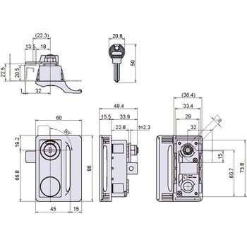サイドバーロック (錠付 亜鉛ダイカスト)