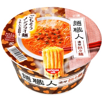 「日清麺職人」は、小麦の風味が感じられる全粒粉入りの「ごちそうノンフライ麺」が特長で、お手頃な価格と相まって主婦層を中心にご好評をいただいています。