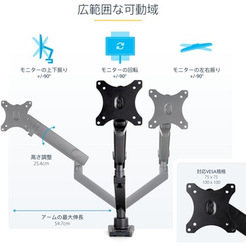 モニターアーム/クランプ・グロメット固定式/1画面/最大40インチ/耐荷重8kg/VESA対応/多関節 高さ調整可能/デスクマウント PC パソコン ディスプレイアームStarTech.com税込¥21,978¥19,980