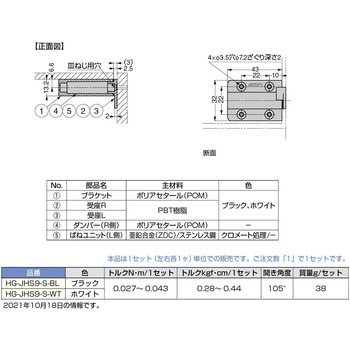 メーカー5万回開閉試験をクリアしています。自開式の上蓋用小型ダンパーヒンジです。プッシュラッチなどと併用することで、上蓋をソフトにポップアップできます。インセット仕様です。六角棒スパナで、蓋の開き速度を調整できます。