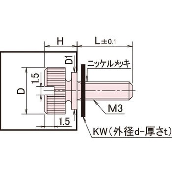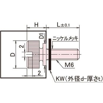 黄銅 ローレットツマミ(スリ割ツバ付・ワッシャー組込)
