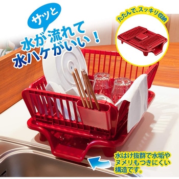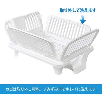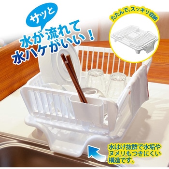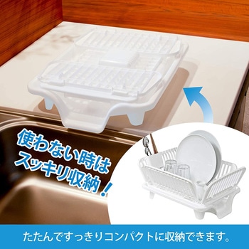 たたんで、立てて、スッキリ収納できる食器用水切りカゴ。カゴが折りたためてすっきりコンパクトなスタイルに。付属のスタンドで本体を立てて収納できます。箸立ては邪魔にならないスリムなデザイン。水は流出口からシンクに。水はけ抜群で水垢やヌメリもつきにくい構造。カゴは取り外し可能。すみずみまでキレイに洗えます。