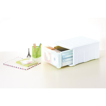 前面から中身が確認できるので少し高い所へでも置けるので重宝
