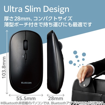 厚さ28mmの薄型設計でカバンに入れて持ち運びしやすい! ソフトレザー製収納ポーチが付属したBluetooth(R)モバイルマウス”Slint(スリント)”。