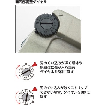 EM-EEF2.0mm×3Cの端末処理(シース剥ぎ、絶縁剥ぎ)用でエコ電線対応とのことで購入しました。他社に比べ、調整しましたが内部絶縁体に傷が入り易く、また内部絶縁体剥ぎ時作業のハンドルを握る際の固さが固すぎて、1本作業するのにも大変な労力がかかり、調整しましたが内部導体にも傷が入ってしまいます(はっきり言って使えません)調整ダイヤルのネジを外していじってみましたがダメでした。国内メーカーということで期待していましたが非常に残念でした。