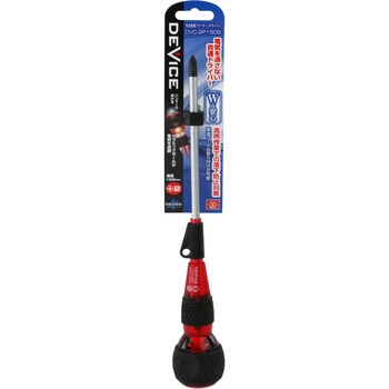電気を通しにくく、高所作業での落下防止対策も可能、Wで安心な貫通ドライバーです。貫通構造にセラミックボールを入れることで電気を遮断し、安全にハンマーで叩くことができます。高所作業での工具落下を防ぐ落下防止用安全コード取付け部付きです。フリーに回転するのでスピーディな早回しも可能です。
