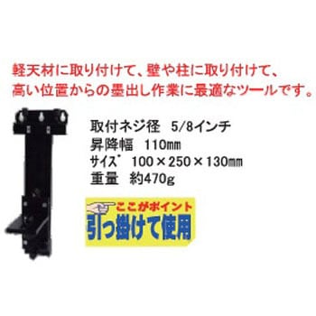 軽天材に取り付けて、壁や柱に取り付けて、高い位置からの墨出し作業に最適なツールです。