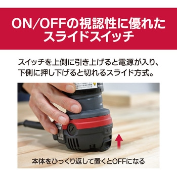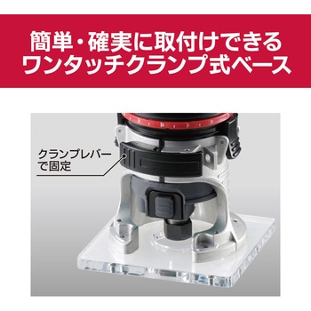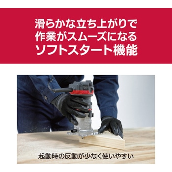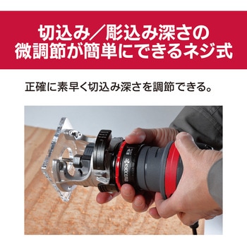 滑らかな立ち上がりで作業がスムーズに切込み/掘込み深さの微調節が簡単にできるネジ式精度の高いアルミダイカスト製ベースベースの取付けは簡単、確実にできるワンタッチクランプ式被削材に合わせて回転数を無段階に調節できる速度調節機能付刃物の交換に便利なスピンドルロック付切削位置を見易くするLEDライト付タブテールガイド、ストレートガイド、ストレートビット付