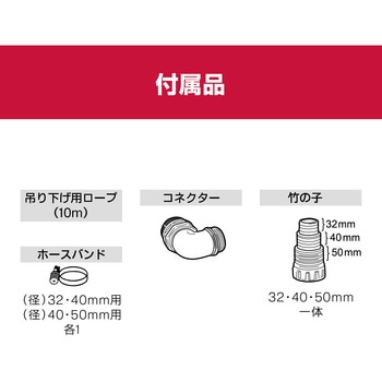 竹の子(32/40/50mm一体ダイプ)、コネクタ、ホースバンド(32/40mm用、40/50mm用)、吊下げ用ロープ(10m)