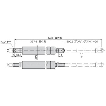 ロッドの伸び方向のみ抵抗力が働きます。作動がソフトでなめらかです。