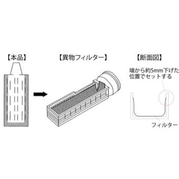 異物フィルターに付いているゴミを落としてください。異物フィルターに合うサイズにハサミ等でカットしてください。ゴミや髪くずがいっぱいになりましたら、お取替えください。フィルターの凸部分を異物フィルターの取っ手側に装着してください。フィルター(グレー部分)がはみ出る場合はハサミ等でカットしてください。