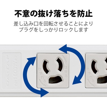 差し込み口を回転させることにより、プラグをロックすることができ不意の抜け落ちを防止します。