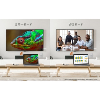 無線LAN(ワイヤレスインターネット)で簡単に端末の画面をHDMI大画面にミラーリングできるドングルレシーバーです。幅広い互換性でWindows/mac/iOS/Androidを対応しています。ソフトインストール不要で簡単にスマホ内蔵のキャスト機能を利用できます。高解像度1080p出力して大画面HDMIで楽しめます。2.4G/5GHzデュアルバンド採用して高速安定伝送を提供しています。ネットセットアップをしなくても直接ペアリング使えますので、外や車やキャンプなど無線LAN環境はない時には簡単にご利用頂けます。パソコンで利用する場合で拡張モード(マルチ表示)をサポートしているので、自宅用・ビジネス用でも便利に使えます。
