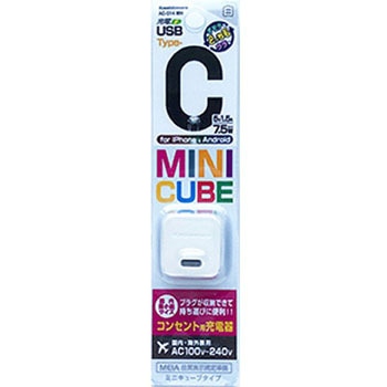 国内最小級サイズの持ち運びに便利な、USB Type-Cポート付のAC充電器。