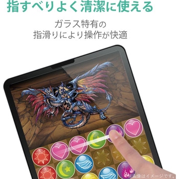 ガラス特有のなめらかな指滑りを実現するiPad Pro 11インチ (第4世代)(2022年モデル)、iPad Air (第5世代)(2022年モデル)、iPad Pro 11インチ (第3世代)(2021年モデル)、iPad Air (第4世代)(2020年モデル)、iPad Pro 11インチ (第2世代)(2020年モデル)、iPad Pro 11インチ (2018年モデル)用液晶保護ガラスです。強化ガラス採用により、保護ガラス表面のキズを防止します。握ったときやカバンからの取り出し時にも引っかかりがないラウンドエッジ加工を施しています。指紋汚れを付きにくくする指紋防止コーティングを施しています。万一割れてしまった場合も飛散しにくい安全設計です。フィルムを貼ったままでも本体操作ができるタッチスクリーン入力に対応しています。貼り付け面にシリコン皮膜をコーティングし、接着剤や両面テープを使わずに貼り付け可能な自己吸着タイプです。貼りやすく、貼り直しも可能です。端末の形状に合わせたサイズにカット済みなので、パッケージから取り出してすぐに使用可能です。フィルムがキレイに貼れる、専用ヘラと、クリーニングクロス、ホコリ取りシールが付属しています。