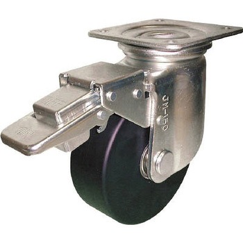 ステンレス 315S・自在車(ゴム一体車輪) ストッパー付 平付旋回
