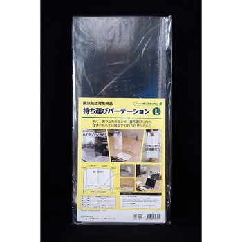 透明度が高くハイクリアな視界。持ち運びに便利な収納袋付き。軽くて、折りたためるので、持ち運び可能。食事や外出先の対面での打ち合せでも安心。PET材質なのでアクリルパーテーションでは使用できないアルコール消毒が可能です。