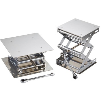 耐食性・耐久性に優れたオールステンレス製のラボジャッキです。 天板の高さが自由に調節でき、光学機器・ヒーター・スターラー等を必要な高さで使用するのに便利です。