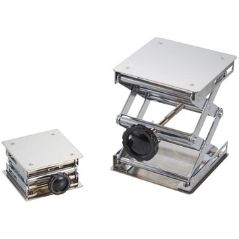 耐食性・耐久性に優れた、オールステンレス製のラボジャッキです。 側面のハンドルで天板の高さが調節でき、光学機器・ヒーター・スターラー等を適度な高さに使用するのに便利です。