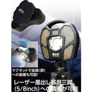 強力マグネットに加え、レーザー墨出し器の三脚取り付け(5/8inch)も可能。