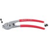 切断時にケーブルが滑らないように、鎌の形をした刃先になっています。開口用バネ及びロック機構付き。170mmタイプはΦ12mm(40平方ミリメートルまで)、230mmタイプはΦ18mm(60平方ミリメートル)までの銅、アルミケーブルに使用できます。スチールケーブルやワイヤーには適しません。