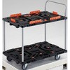 100Φ車輪の5輪仕様なので均等荷重は250kgあります。100Φの車輪なので小径よりも段差等の乗り越え性能に優れています。メッシュ構造の採用で、軽量で移動が簡単です。縦・横方向に連結が可能です。薬品や溶剤にも侵されにくく耐久性に優れています。エラストマー樹脂車輪の採用でタイヤ痕がつくのを軽減します。荷物の落下防止の収納式柵が付いています。使用しない時は本体に収納可能。運搬時の一時的な固定用にとめたろうCH75100-2Sが付属しており、未使用時は本体に収納可能。