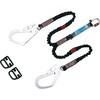 装備体重100kg以下の方用です。ツインランヤードです。ノビロンランヤード付で未使用時は短く縮んでいて移動時の引っ掛かりを抑えることが出来ます。軽量型です。ブレードロープ付で手触りがよくキンクが起きにくいロープです。大口径フックには自在式スイベル付です。