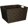 落ち着いた色で思っていたよりもずっと丈夫な製品でした。真ん中に針金があるので幅ぎりぎりな狭い箇所に置いても形がゆがむこともなくしゃんとしています。次回の全品10%オフの日に同色のこげ茶を買い足そうと思っています。