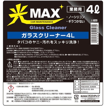 タバコのヤニ・手アカ等の汚れを素早く落とせるガラスクリーナーの業務用大容量タイプです。 強力な洗浄力でガラスのしつこい汚れも素早く除去できます。 ノーシリコン・ノーコンパウンドで、ギラつかず拭きムラのない透明な仕上がりです。