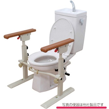 安心できる座位の保持と、立ち上がりをサポートいたします。ご利用者様の身体に合わせ、アームレストの高さや横幅を調整できます。また、アームレストはワンタッチではね上げができます。様々な便器形状に合せ、工具なしで調整取付できます。温水洗浄便座のついた便器にも対応いたします。