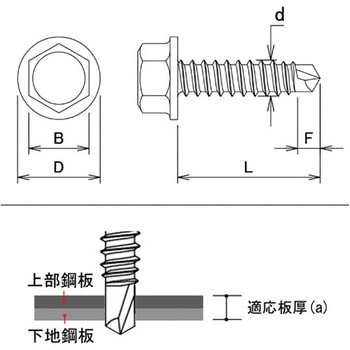 JIS(B 1124)認証工場 製造品!JIS規格に基づいた設計による安心品質、抜群の施工性、優れた締結力!下穴なしで鉄板にねじ込める。(適応板厚内)六角頭の特徴:トルク伝達が大きく、カムアウトしにくい。太径ねじに適している。