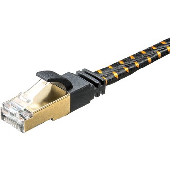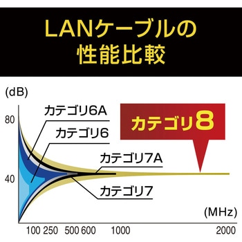 次世代の40GBASE-Tに完全対応次世代イーサネット40GBASE-T(40Gbps)、25GBASE-T(25Gbps)に完全対応します。伝送帯域2000MHzをクリアエンハンスドカテゴリ5の20倍、カテゴリ6の8倍の伝送帯域である2000MHzをクリアします。帯域が広いほど高速伝送が可能になり、データエラー防止効果があります。伝送エラーをストップペア―ごとにシールドを施したセパレーションシールド構造で、しかもペア―間の距離を保つことにより伝送エラーをストップします。断線しにくいメッシュ外被フラットメッシュ素材採用で引張強度200%を実現。ケーブル厚3.2mmのフラットタイプで、カーペットの下や細いすき間に配線できます。また、ケーブル内部をモールド加工しているので、ケーブルのよりが戻りにくく、性能特性が落ちません。ツメ折れ防止カバー付きコネクタ部の爪が折れにくいよう、弾力性に優れたPVC製ツメ折れ防止カバーを採用しています。金メッキコネクタサビや酸化被膜の発生を抑え、高精度の接触を保証する金メッキシールドプラグを採用しています。