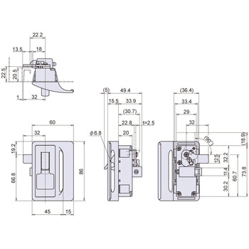 引手付ロッカー錠 鍵穴付