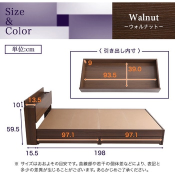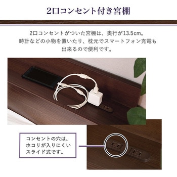 収納付きデザインベッド有効活用可能な収納付きデザインベッドダブルサイズ!タブレットも立て掛けられる宮棚・2口コンセント付き!PVCシートには抗菌・防臭機能付き!高級感のあるブラックオークの木目調が特徴です!