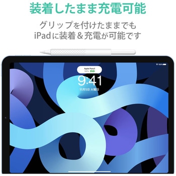 ApplePencil第2世代にシリコングリップをつけたまま、対応するiPad側面に装着できます。