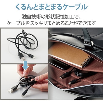 独自技術の形状記憶加工ケーブル(特許出願中)で、使わないときや収納・持ち運びの際にケーブルをスッキリまとめることができます。